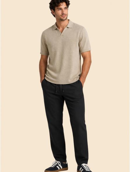 Pantalons d'home color cru confeccionat amb barreja de cotó i lli, ideal per a un estil fresc, elegant i natural. El disseny recte amb cintura còmoda i cordó ajustable el converteix en una peça perfecta per a looks d'estiu, casuals o de vestir desenfadat.