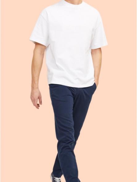 Pantalons perfecte per injectar una dosi d'informalitat a qualsevol look de vestir, ja que combina la sofisticació de el tall slim amb unes camals cenyides. Es tracta d'un tall en què el teixit elàstic o Stretch és un teixit confeccionat principalment amb cotó a què se li ha afegit una lleugera dosi d'elasticitat. Aquest teixit ofereix un confort superior sense que el seu look característic es vegi per això alterat.