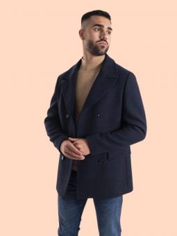 Una col·lecció única i atemporal que amaga el nostre ADN, pensada per acompanyar-te cada dia en les bones i en les dolentes, plogui o faci sol. Realitzat amb llana de color blau fosc, aquest abric peacoat d'home de tancament creuat i tall regular .El pots acompanyar amb un jersei de coll alt.