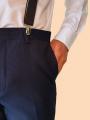 Vestit de cerimònia de tall REGULAR FIT, confeccionat en un teixit de microdibuix fent un petit tornassol que el fa increïble per a aquest nuvi més tranquil o acompanyant del nuvi o la nuvia ; tancament d'un botó, solapa de bec, butxaca de pit per a mocador, folre interior de fantasia. Pantalons de tir mitjà amb cintura elàstica adaptable, baix de 18 i llarg d'americana de 75.