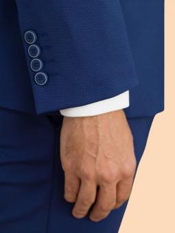 Vestit de tall SUPER SLIM FIT, el vestit on l'exigència del mateix sigui marcar la figura i que el seu estil sempre acompanyi, amb solapa picada al cantell i dues pinces a l'abans, els seus pantalons són de tir curt amb cintura elàstica adaptable i baix de 17, el llarg de l'americana és 72.