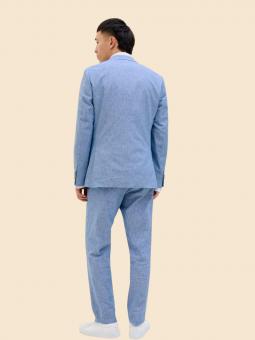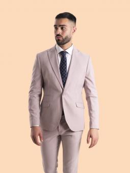 Vestit de tall SLIM FIT. El vestit adaptat a tots els cossos d'igual manera on l'estil predomina sobre la resta. Amb solapa picada al cantell i dues pinces al davanter, els seus pantalons són de tir mitjà amb cintura elàstica adaptable i baix de 18, el llarg de l'americana és 72.