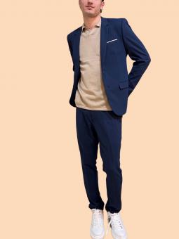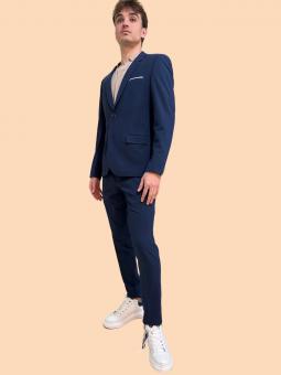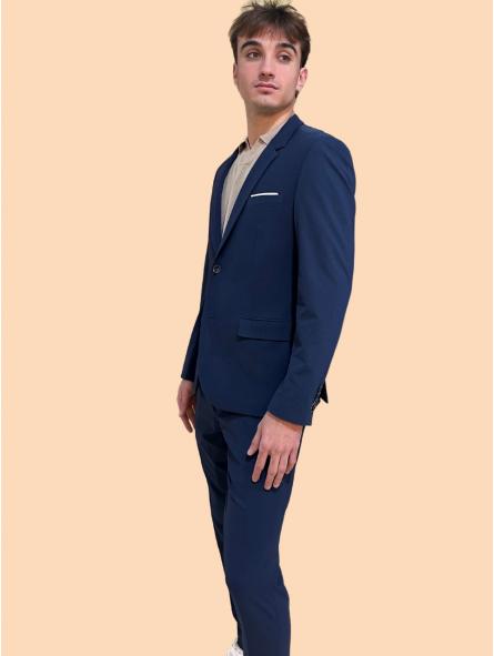 Vestit de tall Slim Fit micro estructurat confeccionat per atorgar un confort extra. Coll amb solapa clàssica i pin decoratiu, tanca de dos botons. Dues butxaques laterals amb solapa, una butxaca inserida a l'alçada del pit amb mocador recte removible i màniga llarga acabada al puny de quatre botons. Folre amb diverses butxaques interiors. Pantalons amb dues butxaques laterals i dues butxaques posteriors rectes.