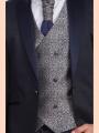 Conjunt de Jaqueta amb un fi brocat al to, armilla ,corbató i mocadors inclosos, els pantalons estan confeccionats en un teixit llis, tipus ras amb toc de lluentor. Disposem de talles grans per siluetes més corpulentes, es un conjunt ideal per un nuvi contemporani i atrevit.
