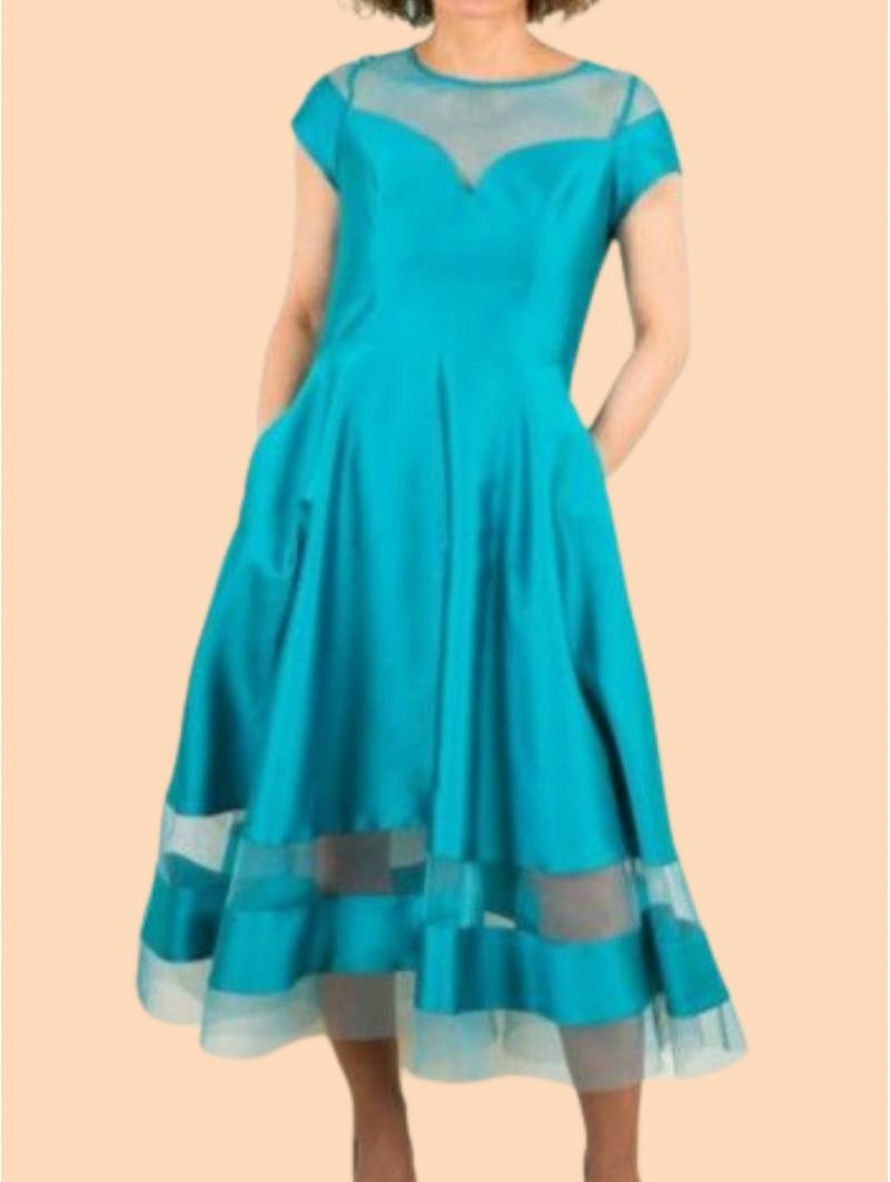 Los vestidos de medida midi , son una opción para eventos de día . La falda circular ceñida a la cintura realza la silueta y neutraliza las caderas.