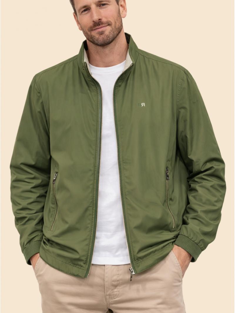 Su diseño reversible permite disfrutar de dos estilos en una sola prenda: un lado liso en color verde, más sobrio y elegante, y otro lado con tejido microestampado, que aporta un toque más moderno y casual.