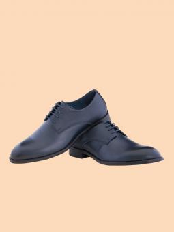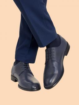 Zapato de vestir masculina de color azul marino liso con puntera y mejilla picada para darle este toque más elagante, el cierre es tipo derbi para mayor comodidad y ajuste, el interior está forrado en piel para mayor suavidad